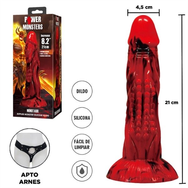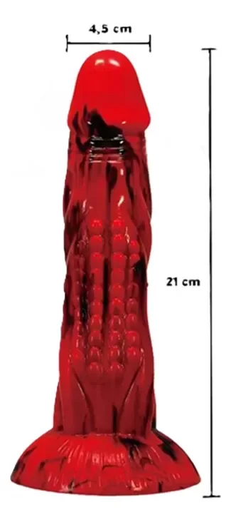¡Prepárate para cabalgar con este consolador Minotauro! Esta varilla gruesa y larga, parecida a la de un caballo, es de color roja y negro. En la punta de la cabeza ancha y lisa de prepucio que se unen en un punto para crear una cresta a lo largo del eje. En el centro hay costillas arrugadas donde la piel se amontona a lo largo de la enorme longitud de este pene. ¡Este consolador carnoso tiene un cuerpo largo y grueso que superará tus límites! Hecho de silicona premium, flexible y libre de ftalatos, este dildo es seguro para el cuerpo y se recomienda usarlo solo con lubricantes a base de agua. ¡Disfruta de paseos con manos libres gracias a la fuerte base de ventosa! ¡Invita a tu pareja a disfrutar de un cosplay pervertido o un juego de rol de fantasía y usa su arnés favorito para transformar este dildo en un strap-on! Después, asegúrate de lavarlo con agua tibia y jabón suave, luego rocíalo con un limpiador de juguetes y déjalo secar al aire. Mantenlo alejado de la luz solar directa y del calor.