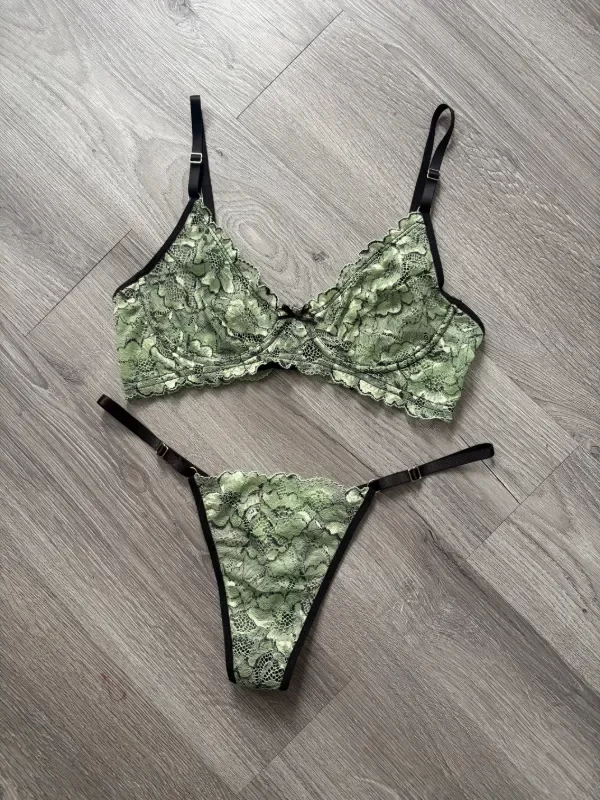 Conjunto de puntilla con aro, detalle de florcita en el centro.