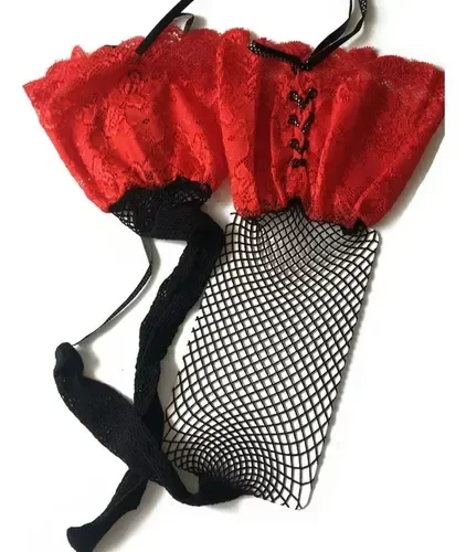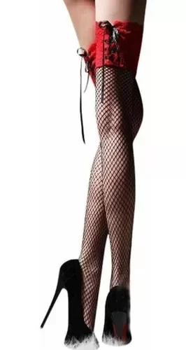 Media bucanera de red con puño de encaje acorsetado.