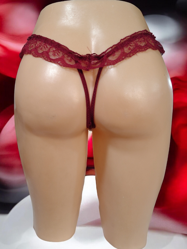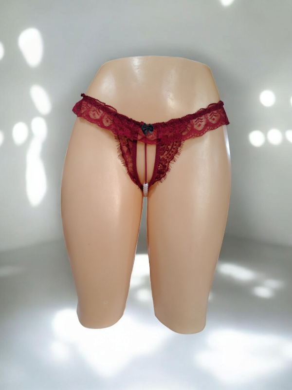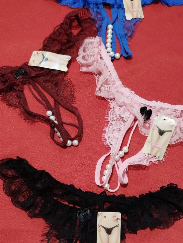 Less de puntilla, estilo rutera con perlas estimuladoras con voladitos de puntilla. Talle único.